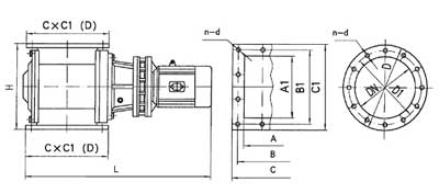 A1×A B1×B C1×C DN D D1 H L n-d 傳動功率型號 功率KW   卸灰能力 m3/h 重量kg